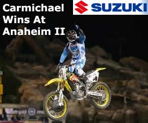 Anaheim, CA - Reigning World and AMA Supercross Champion Ricky Carmichael increased his lead in the AMA Supercross series after taking victory at Saturday night�s Anaheim Supercross third round in California.