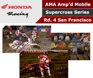 San Francisco - With an all-day rain turning San Francisco�s SBC Park into a virtual quagmire, round four of the Amp'd Mobile AMA Supercross Series could have been anyone�s game. And by the time the checkers flew, the track conditions had indeed taken their toll on quite a few of the top competitors while at the same time providing opportunity for others.